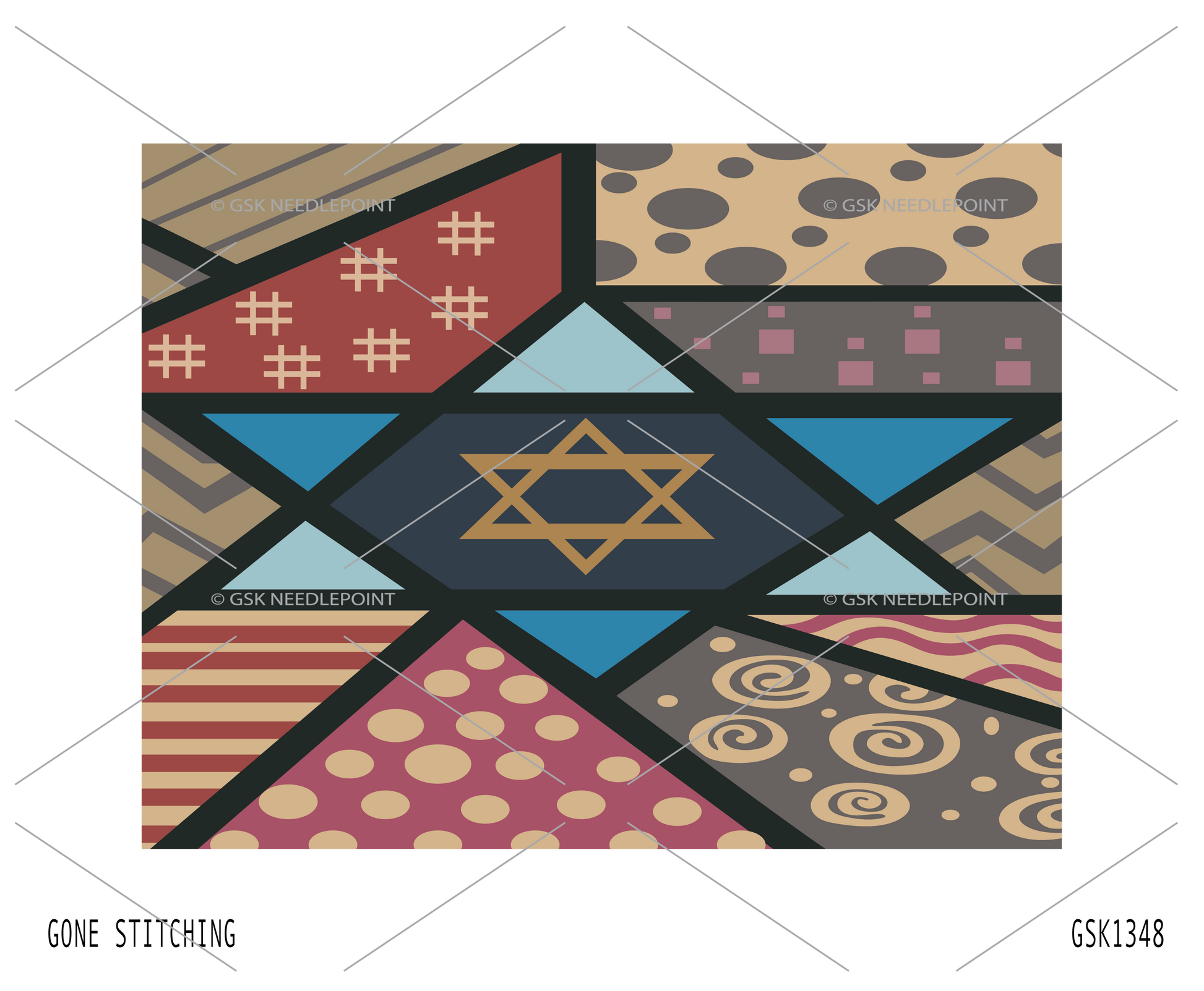 Great canvas to stitch. We can use a variety of stitches and colors. Its what our customers want. We can put the name in the middle of the star, in Hebrew or English.
