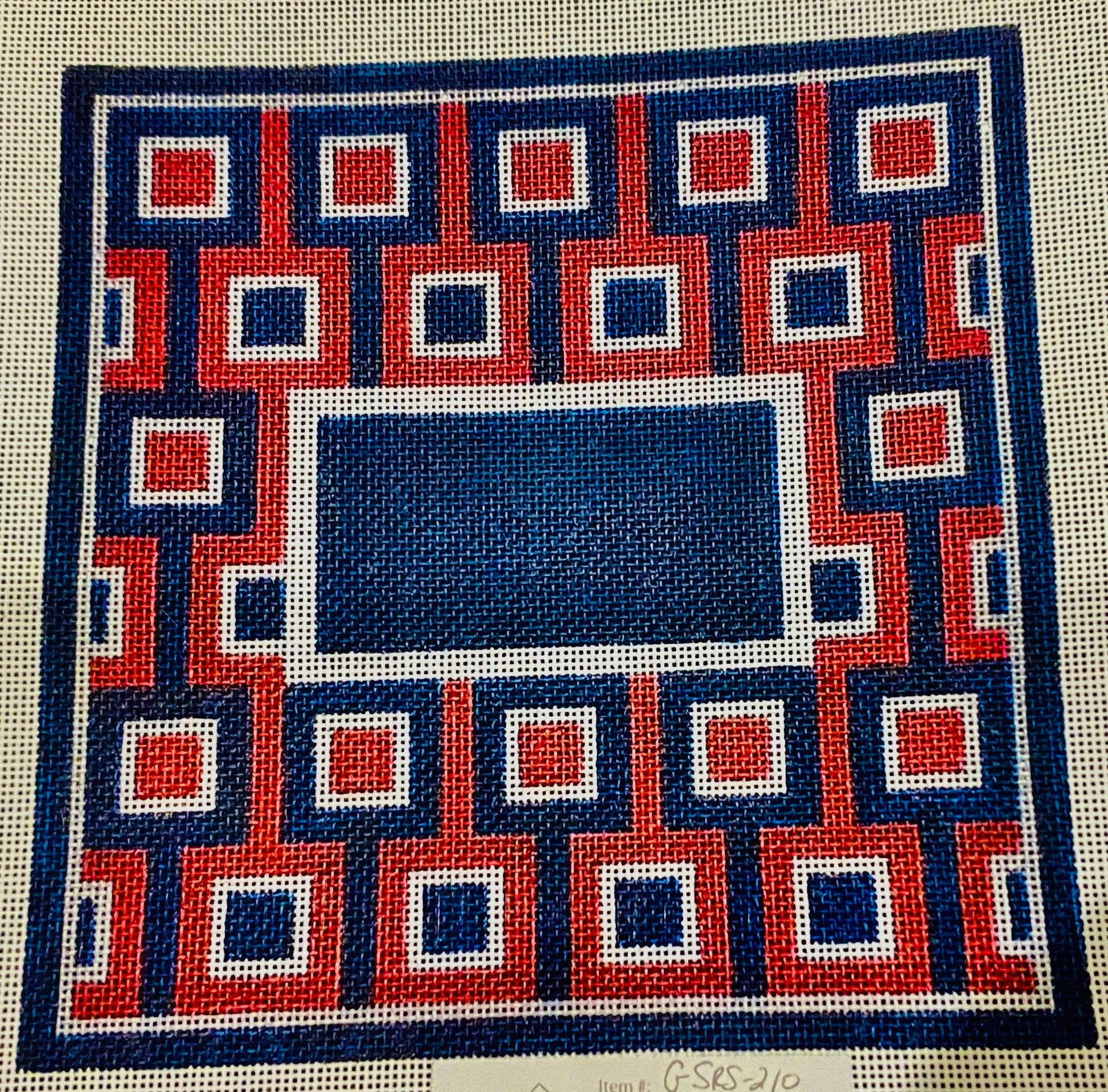 Geometric tefillin bag. We can do all decorative stitches or basketweave this canvas. We will put a name in the middle in English or Hebrew. Come and see the canvas at the store.