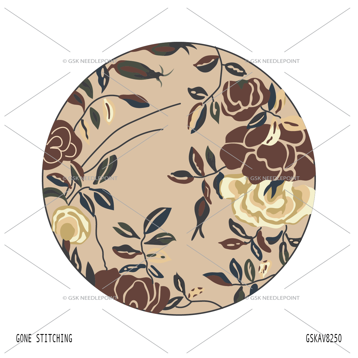 Pretty round canvas with flowers on it. This would make a great pillow. The colors can be changed easily.I need a pillow like this on my couch!