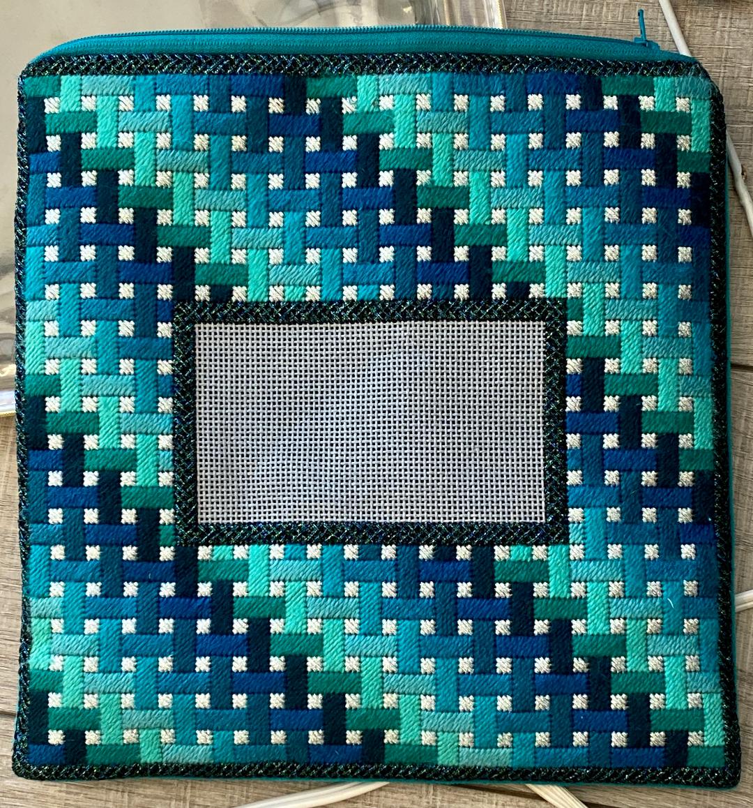 Original canvas by Gone Stitching. Fabulous stitches and threads with a lot of room for the name. Sit with us and learn how to stitch all of it. As always, the colors and threads can be changed. There is a matching tallit. Canvas has not been stitched in the middle in our sample. The name will go in the middle in your canvas.