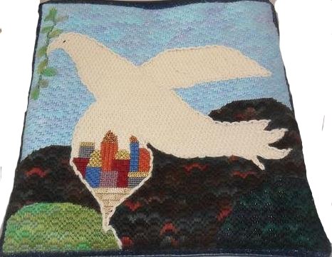 Beautiful dove with Jerusalem in the wing. It also has a matching tallit canvas. Detailed Stitch Guide is included.