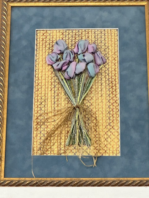 This is a wonderful project. We stitch the background with Wildflowers from Caron Collection. Then we take hand dyed silk ribbon and make big loops and tie it with a bow and done! Beautiful and easy!_x000D_\n_x000D_\n4 canvases left_x000D_\n2 blue _x000D_\n2 Purple