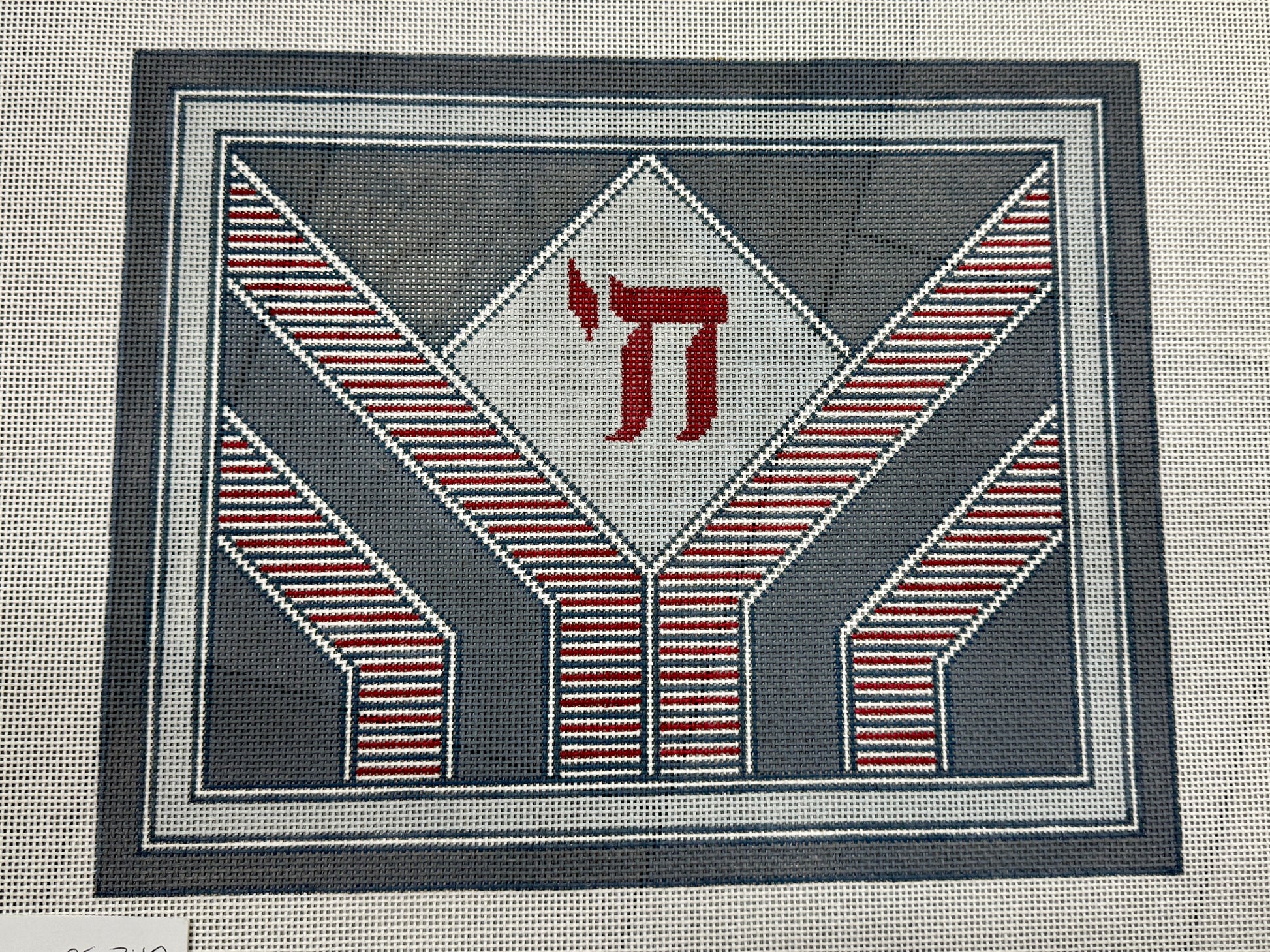 Tallit with chai (life) on it. There are matching tefillin and atara.