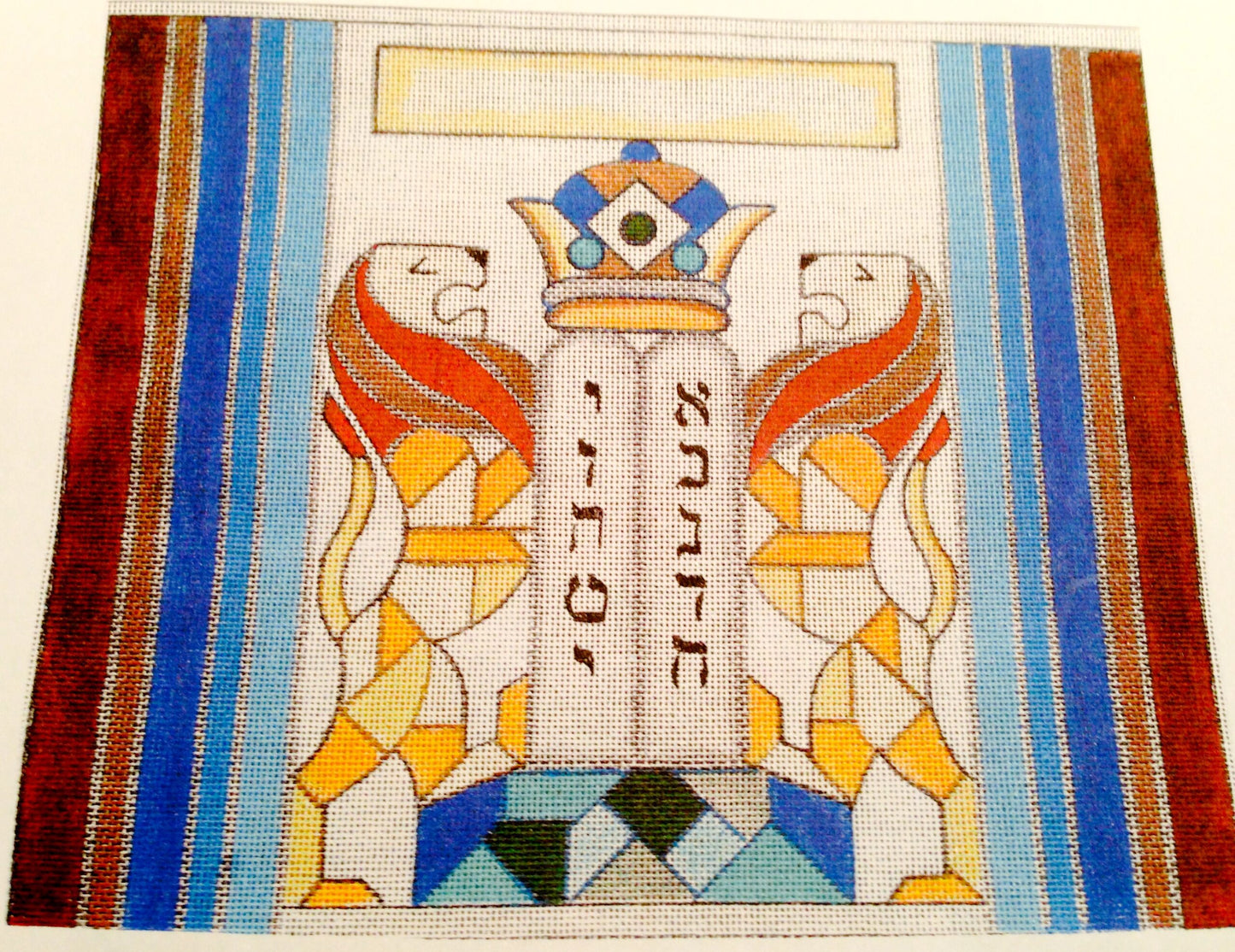 Lions holding the 10 commandments- a great tallit. There is a matching tefillin canvas.