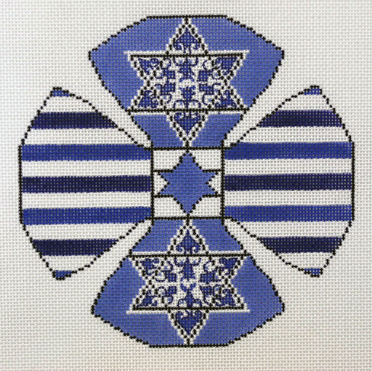A lovely blue and white yarmulke to stitch to match a tallit or tefillin. Great for special occasions or just to let the wearer know they are loved.