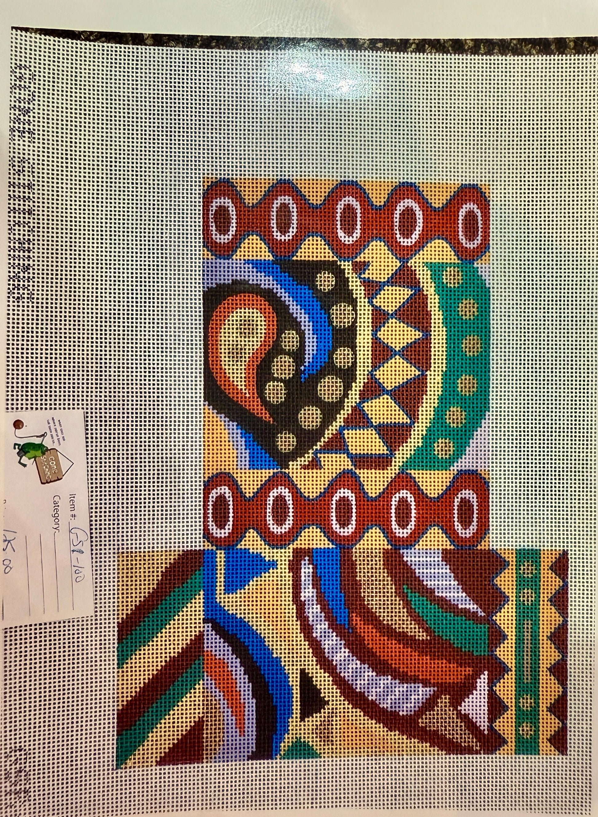 Our amazing Randi Paul-Heskins created another project, a geometric tzedaka box .This comes with a stitch guide and uses a wide variety of stitches; circles, straight stitches and lots of sparkle. This is a very fun piece.