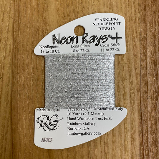 Add just a little more sparkle to your stitching. Neon Rays+ is a wonderful rayon ribbon with a metallic sparkle to it. It comes on a 10 yard card and is perfect for canvases that are 14-18 count in needlepoint and cross-stitch.