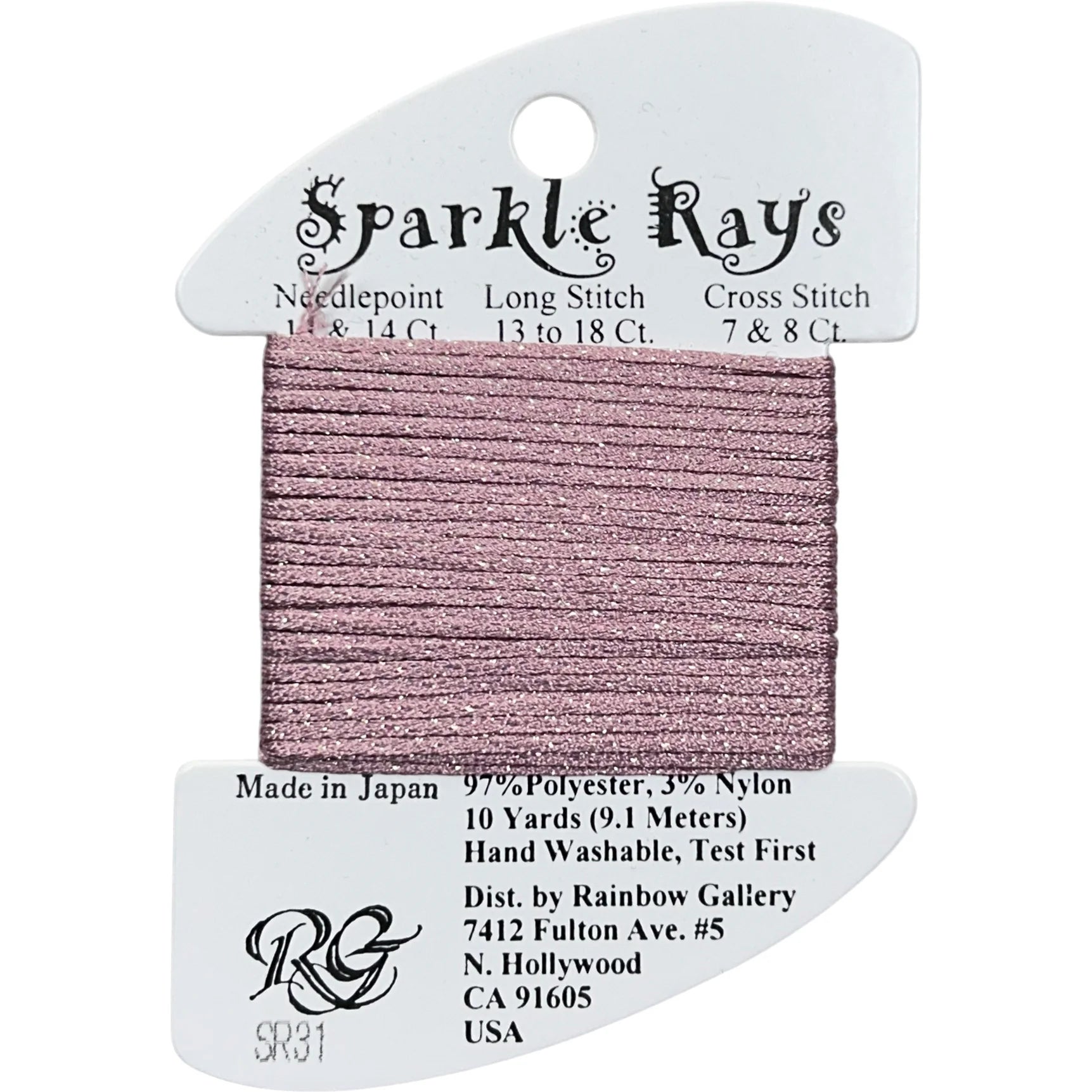 Sparkle Rays is a neon ribbon that glows in the light rather than the dark. . There are small speckles of metallic along the length of the neon colored ribbon. It will unravel past the end of the needle so short tails are called for.
