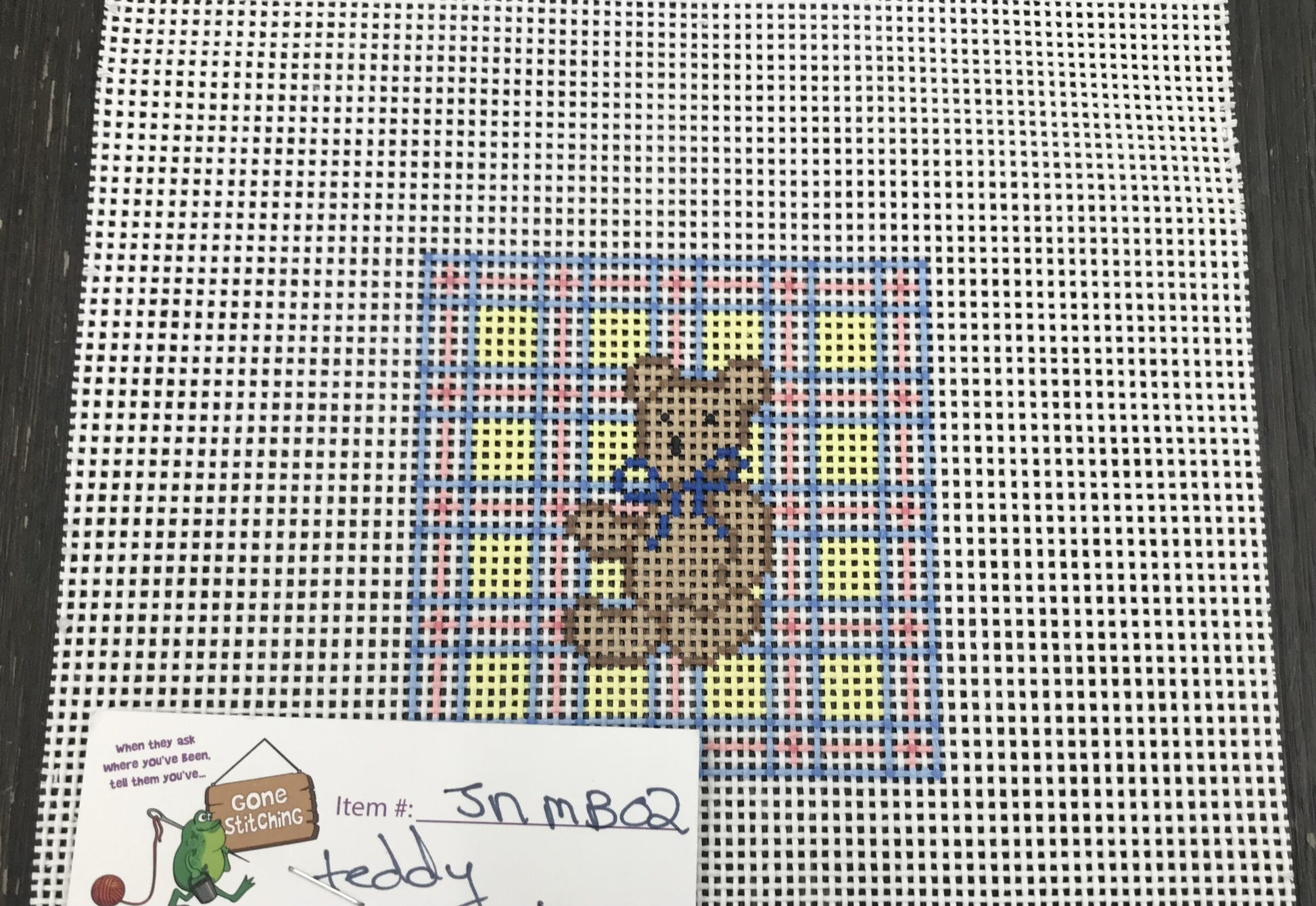 Small canvas 5 x 5”. Another great canvas for a baby and this one is a quick stitch. We can do it in girl or boy colors.