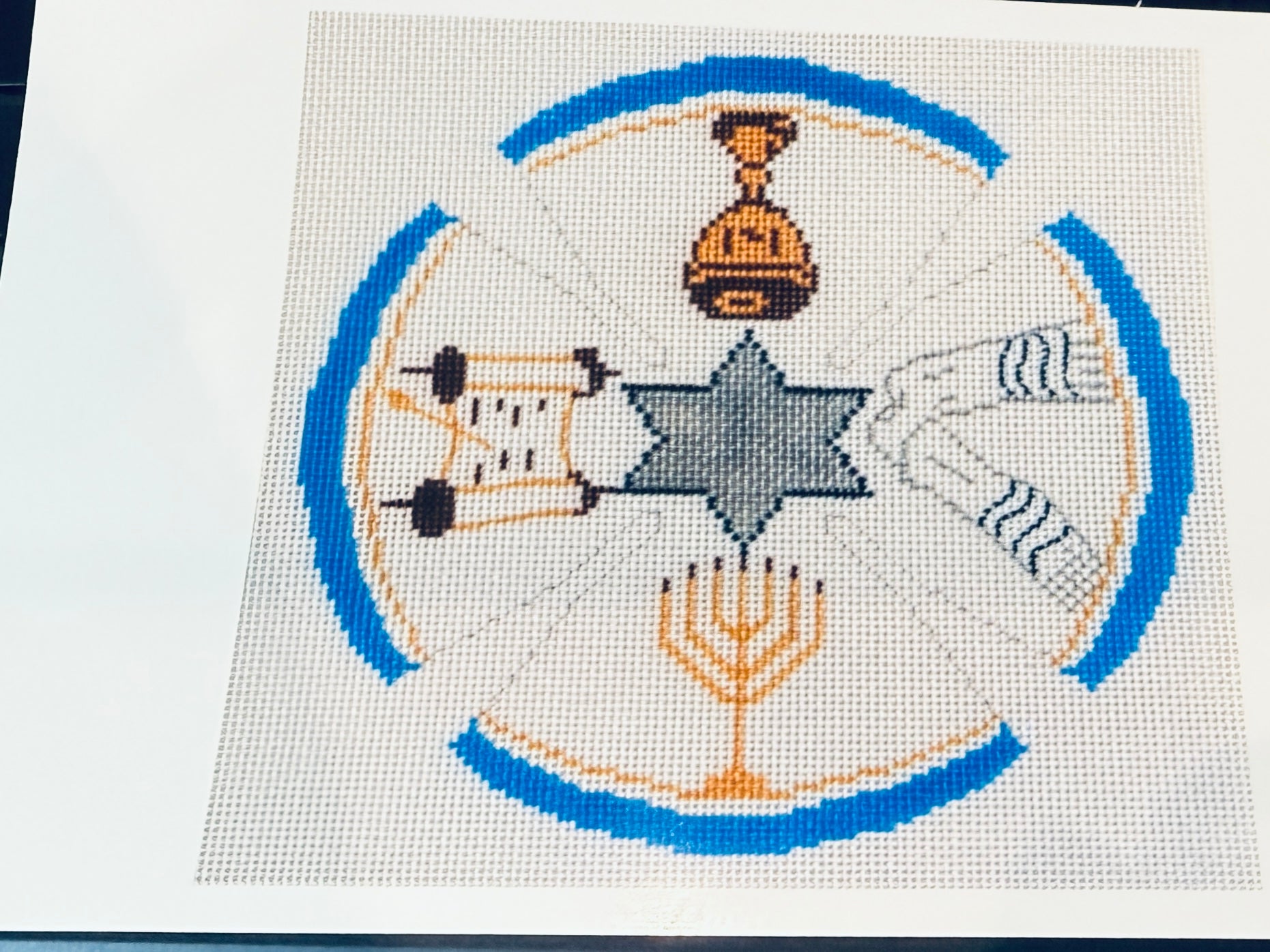 Traditional symbols of Judaism. Kiddush cup, tallit, menorah and scroll. It makes this very popular.