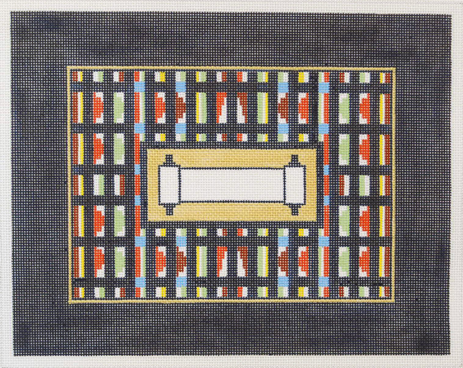 Hand painted canvas showing a torah in the middle.Great traditional canvas. Has a matching tallit.