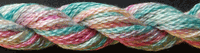 100% Pima cotton. Three strands. Perfect for those straight stitches such as Bargello, even on 14 count canvas. One ply is equivalent to size #5 pearl cotton. These fibers are hand-painted and permanent. They are dyed in small amounts so each batch will vary in distribution of color and in intensity.
