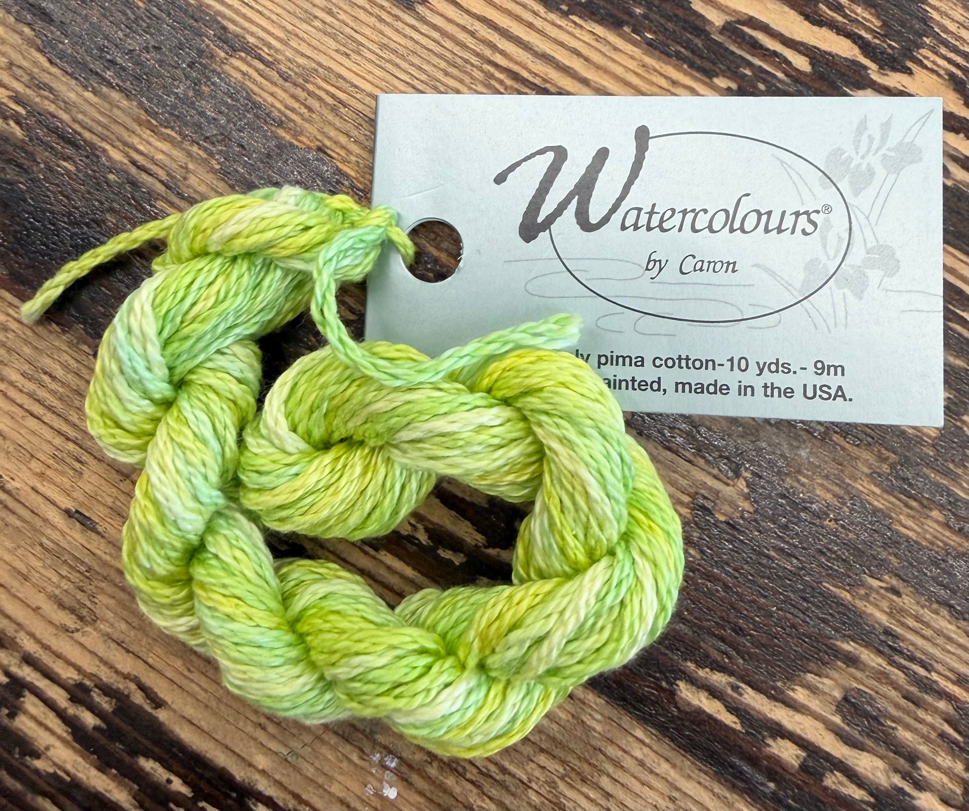 100% Pima cotton. Three strands. Perfect for those straight stitches such as Bargello, even on 14 count canvas. One ply is equivalent to size #5 pearl cotton. These fibers are hand-painted and permanent. They are dyed in small amounts so each batch will vary in distribution of color and in intensity.