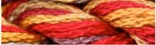 100% Pima cotton. Three stranded. Perfect for those straight stitches such as Bargello, even on 14 count canvas. One ply is equivalent to size #5 pearl cotton. 10 yards per skein (equal to 30 yards of pearl cotton). These fibers are hand-painted and permanent. They are dyed in small amounts so each batch will vary in distribution of color and in intensity. While this adds character to the fiber, it is advisable to purchase enough thread for a large project at one time.